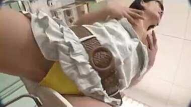 "Little Japanese keeps her panties on while masturbating"