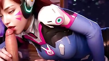 "Overwatch Dva cosplay Having fun Uncensored Hentai AI generated"