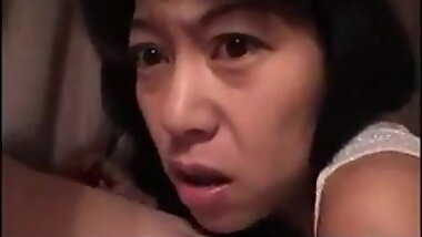 "Mature Asian skank uses a vibrator before she sucks a cock and fucks one"