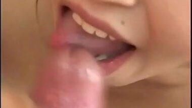 "Japanese babe cocksucks before sex and facial"