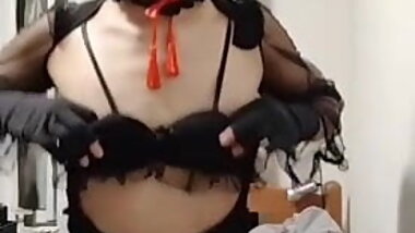 "[Individual shooting] A video of a busty neat and clean cross-dresser masturbating while distributing"
