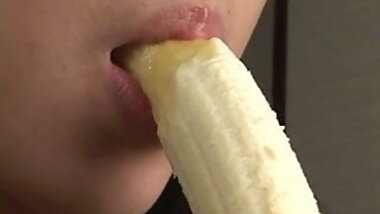 "Beautiful Japanese girl sexily eating a banana"