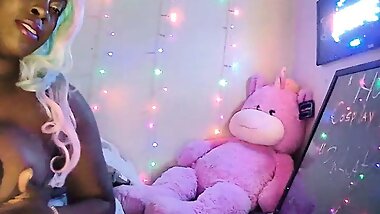 "One slutty black chick fucking two fat black cocks"