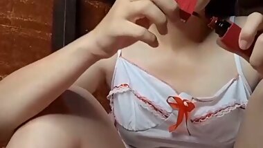 "A Japanese college girl masturbates in a nurse's uniform costume!"