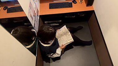"A cute woman who masturbates in a whisper after watching a movie in a private room of an internet café"