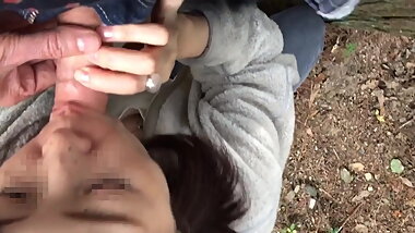 "Hiking BJ: her tiny mouth can't contain the flood of sperm"
