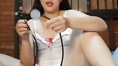 "Fat lip cute Asian bitch toys her wet cunt "