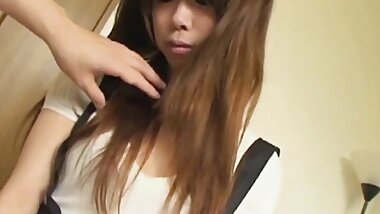 "The fresh Japanese slut girl with brown hair gets her pussy"