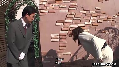 "Three guys get a japanese girl blow job from Saki Aoyama"