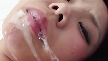 "Loads of cum drip out of this Asian girls mouth after her guy feeds her"