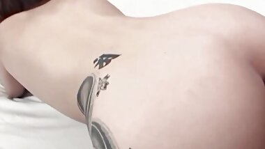 "Cum splatters all over this Asian sweeties stomach as her guy cums over and over"