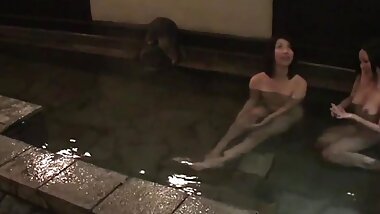 "Two Horny Japanese Girls with Big Tits Take a Bubble Bath with a Guy"