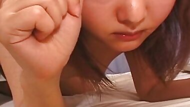 "Horny Japanese Fingering Slut Solo and guy watching"