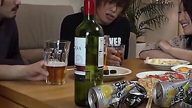 "Horny Japanese woman Anri Hoshizaki likes giving fellatios and getting creampied by numerous guys - what a messy slut!"