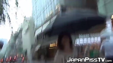"Japanese schoolgirl soaks her panties up at a rainy day"