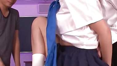 "Yura Kasumi, a luxurious Japanese school-girl, is aroused to partake in her very first 3some with 2 awesom"