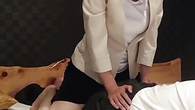 "JAV lesbian massage clinic new hires training threesome"