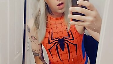 "A video of a cute succubus cross-dresser masturbating while delivering"