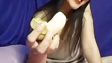 "Super sexy Asian girl show pussy and eat fruit 1"