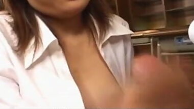 "Asian Teacher teaches her Student how to make his Prick Cum"