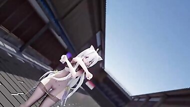 "Haku In Sexy Stockings Dancing + Gradual Undressing (3D HENTAI)"